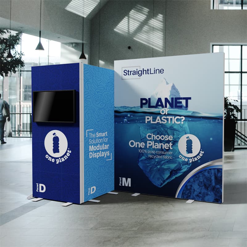 StraightLine Kits provide an exceptional combination of modular displays, blending various shapes and styles to configure enhanced branding environments. These kits include aluminum frame, single-sided graphics, and connectors. Each panel is packed in a wheeled shipping case with custom foam inserts to ensure parts remain neat and organized. The 10-DDM kit forms a dual-depth design offering a smart storage space for cases or product samples, a fantastic choice for a 10ft showcase. Integrating double-sided graphics or incorporating additional elements such as TV mounts, counters and shelving, you can achieve an elevated branded environment. Panels can also be replaced with matching options from WaveLine and BrightLine display systems. Contact our Zilla team for details.