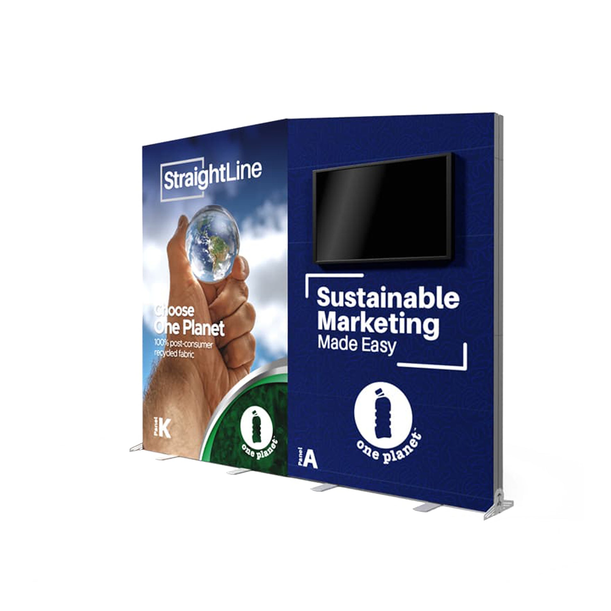 StraightLine Kits provide an exceptional combination of modular displays, blending various shapes and styles to configure enhanced branding environments. These kits include aluminum frame, single-sided graphics, and connectors. Each panel is packed in a wheeled shipping case with custom foam inserts to ensure parts remain neat and organized. The 10-KA kit features an attractive and innovative slanted design, making it a perfect canvas for branding in a modern and eye-catching style. Integrating double-sided graphics or incorporating additional elements such as TV mounts, counters and shelving, you can achieve an elevated branded environment. Panels can also be replaced with matching options from WaveLine and BrightLine display systems. Contact our Zilla team for details.
